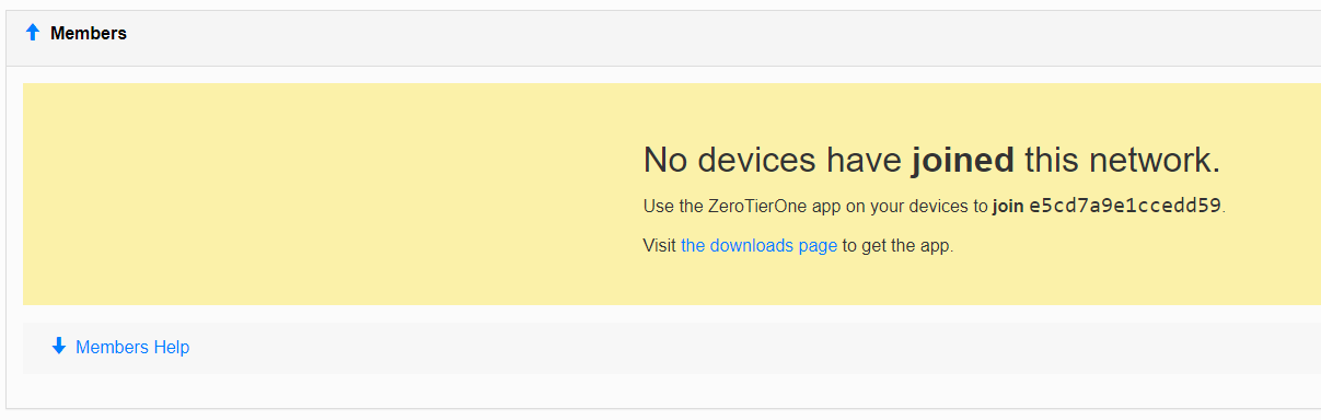 网络中的成员这一栏显示加入当前网络中的成员,由于是刚创建的网络还没有任何成员加入。